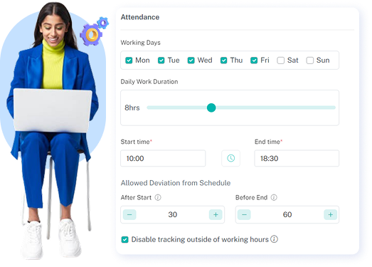 - Manage employee arrival times and ensure completion of work hours seamlessly.